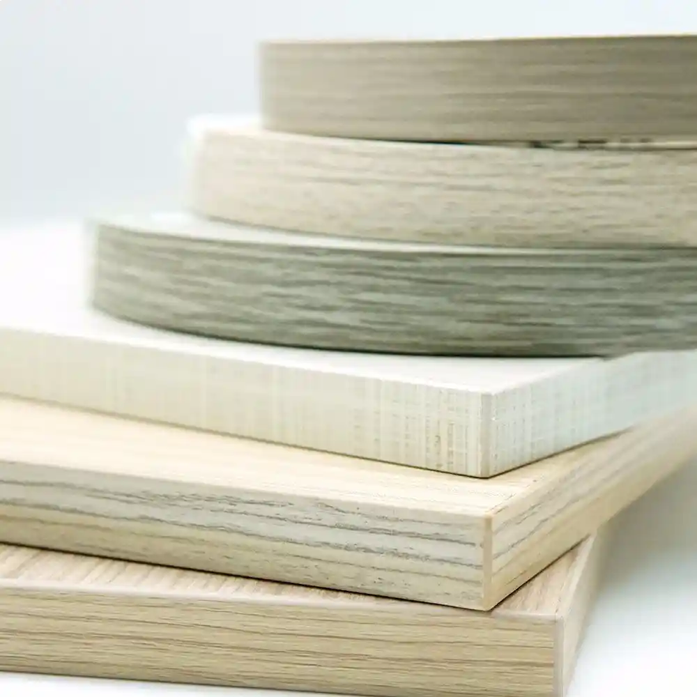 تُستخدم حواف الـPVC في إنهاء حواف ألواح الأثاث والألواح الخشبية: