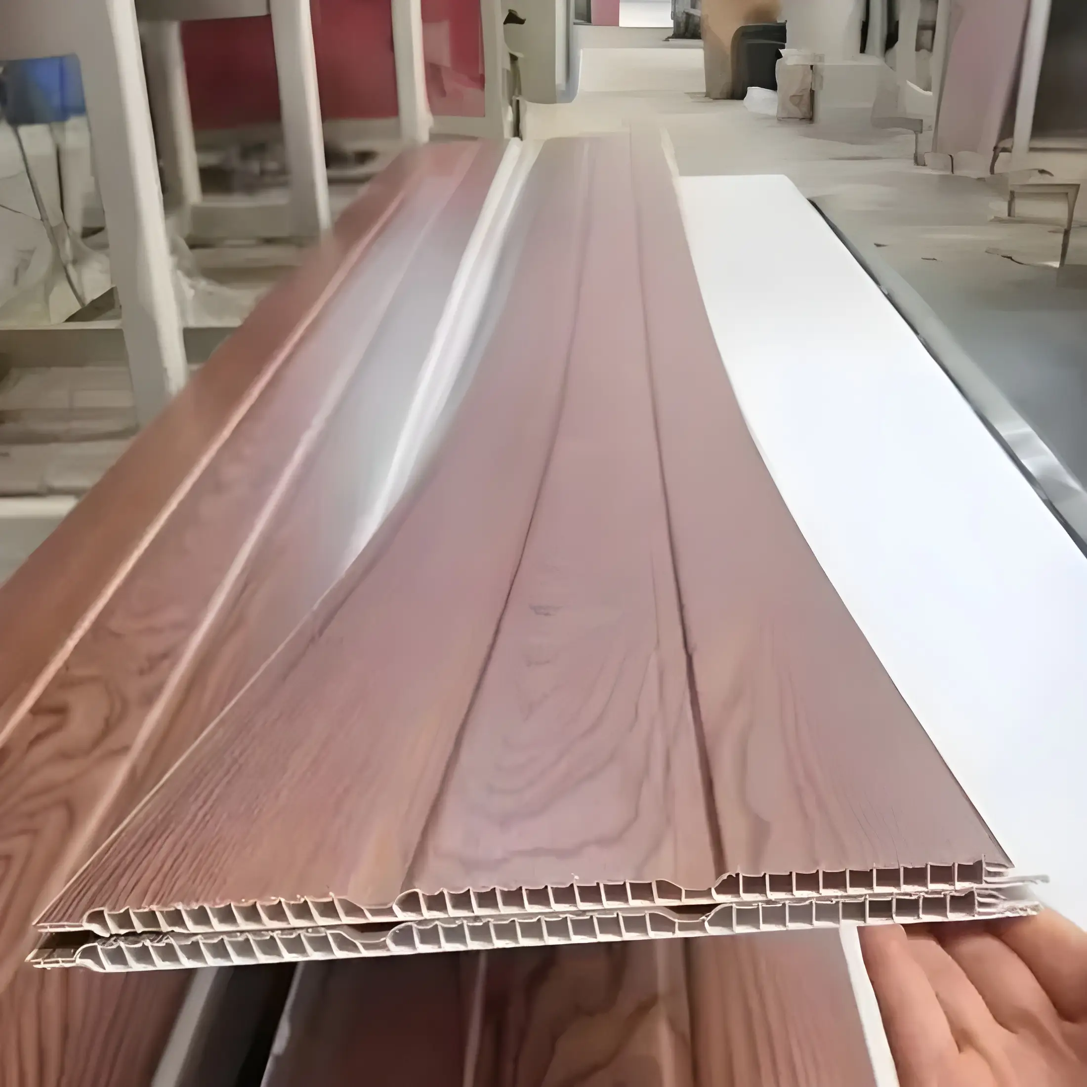 - Finition de surface : Les panneaux SPC reçoivent souvent un revêtement UV protecteur pour résister aux rayures et à la lumière. Les panneaux WPC sont généralement recouverts d’un film PVC décoratif par laminage à chaud.